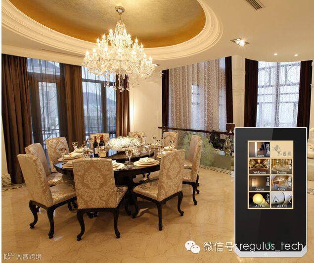 忙碌的工作归来,与家人在餐桌前享用丰盛的晚餐,轻触一下数字智能终端上的“温馨”模式,轻快的背景音乐在餐厅内流动,柔和的灯光让家人在融洽愉快的环境中享受精致的菜肴。