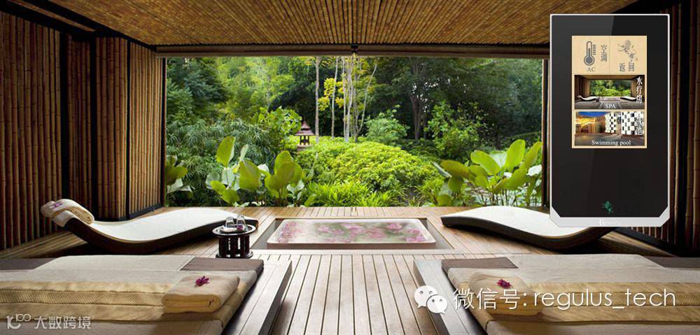 沐浴时,通过数字智能终端设置“SPA”模式,浴室内的排气扇打开,灯光调节至柔和状态,空调调到舒适温度,一边听着柔美的音乐一边享受SPA。