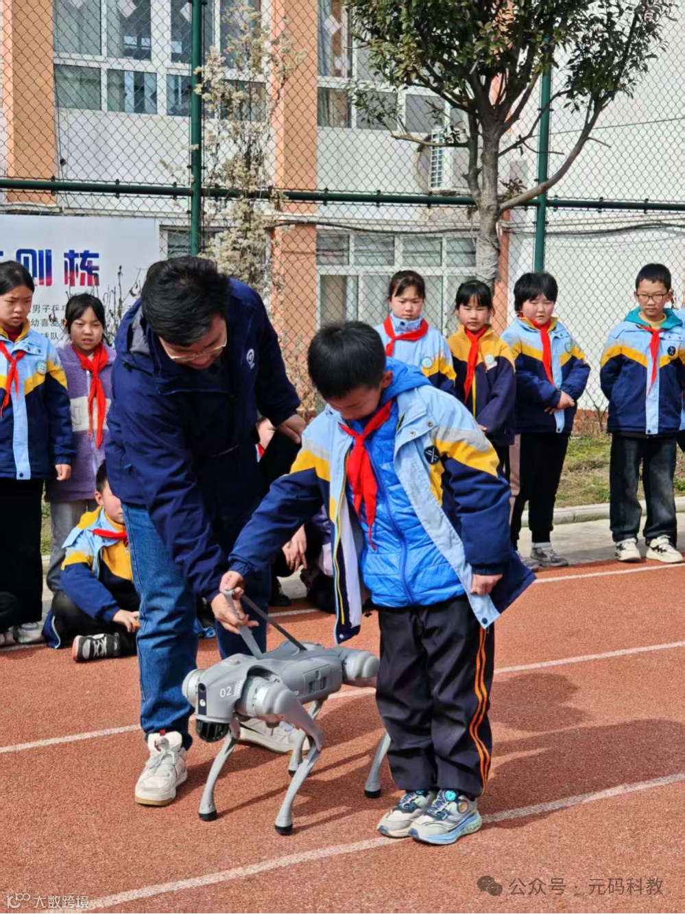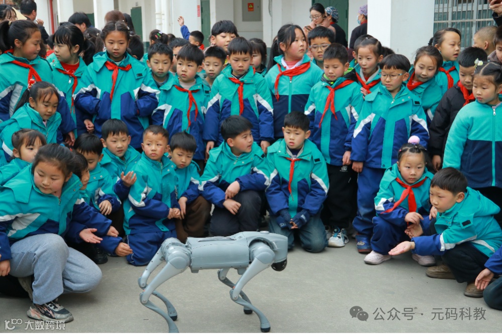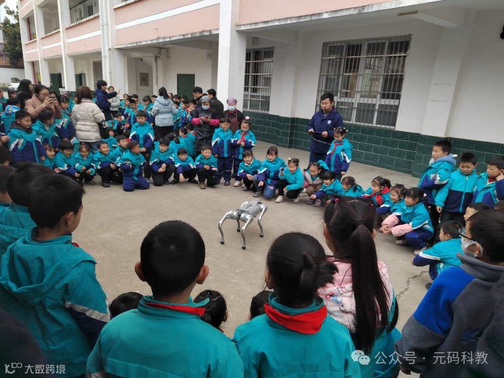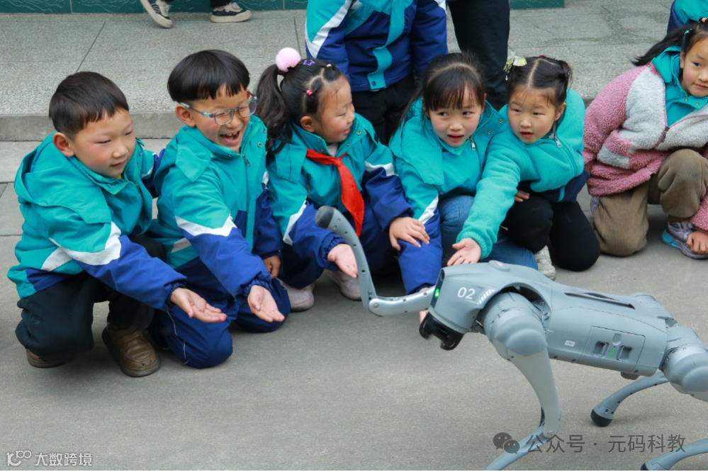 同样的欢乐场景也在青树镇中心小学上演,孩子们牵着机器狗漫步校园,纯真的笑容与机器狗的灵动身影相映成趣,构成了一幅充满希望的画面。
