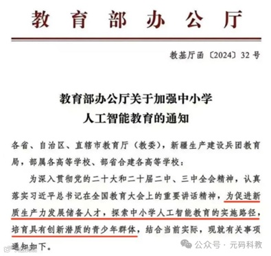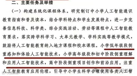 大致内容是:要在全国范围内大力推动人工智能教育,力争在2030年前实现中小学人工智能教育的全面普及。