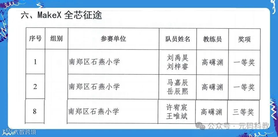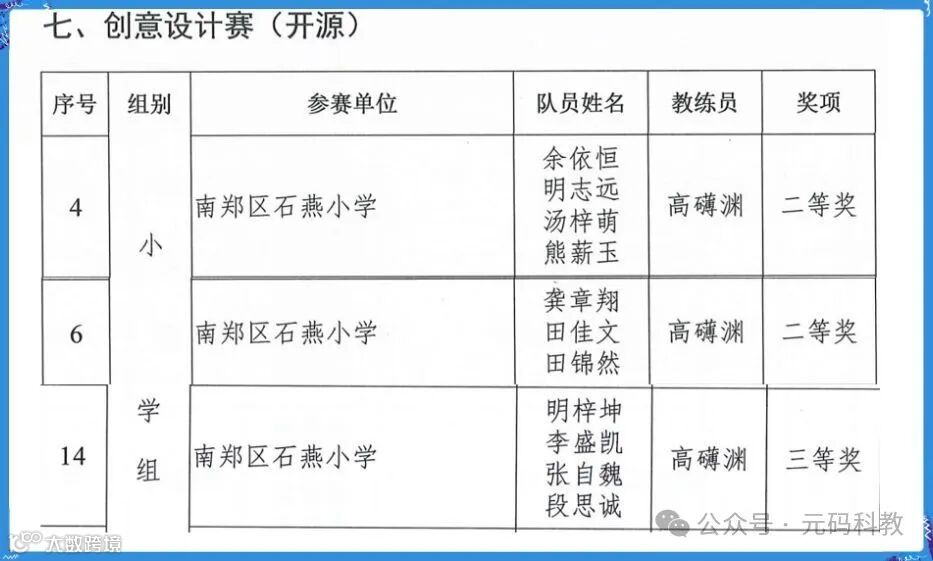摘自《汉中市第六届表少年机器人比赛获奖名单》