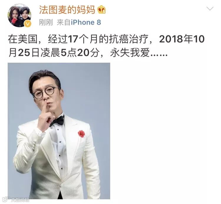 10月29日,李咏妻子哈文在微博发文,宣布李咏因癌症去世。消息一出顺时震惊众人,大多数网友都难以相信这个现实。