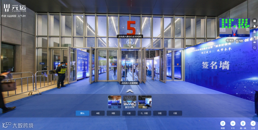 元运科技作为参会企业之一,在会场广受好评,同时,公司还通过用VR全景的方式,在线上重现展会实况!