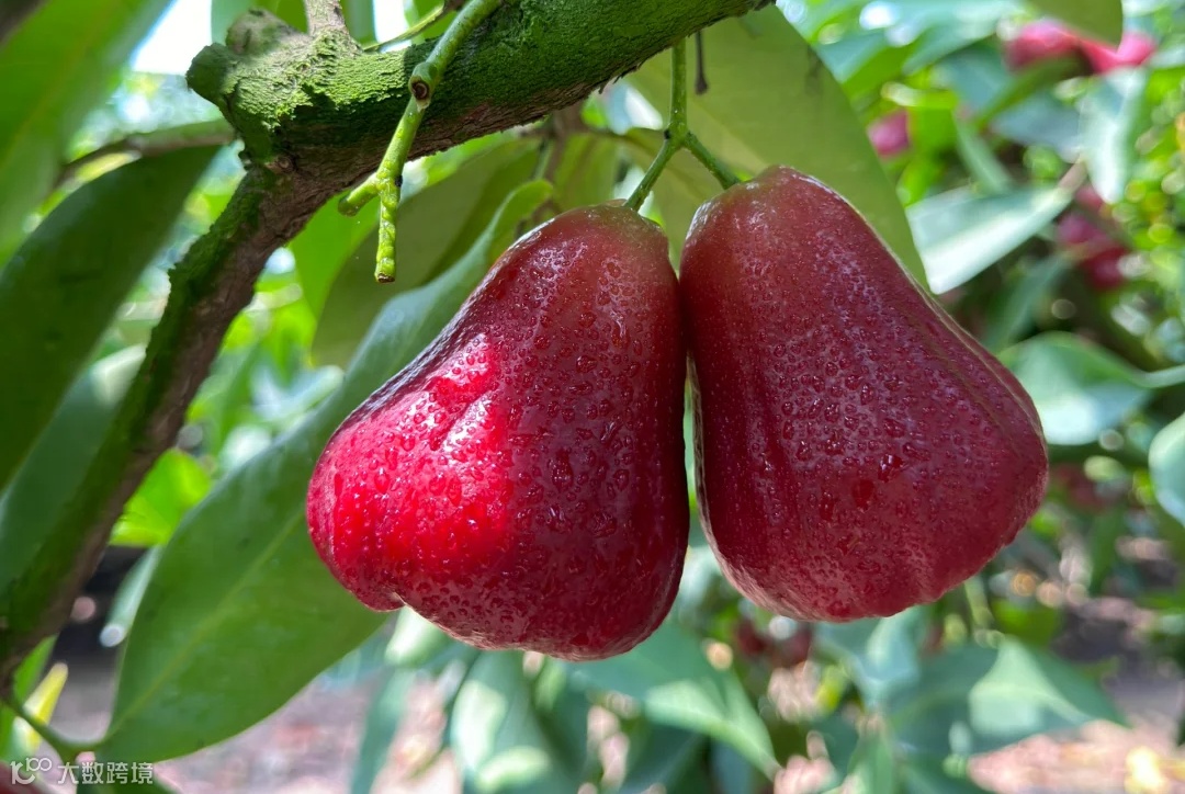 是树上汁水充盈的莲雾,
