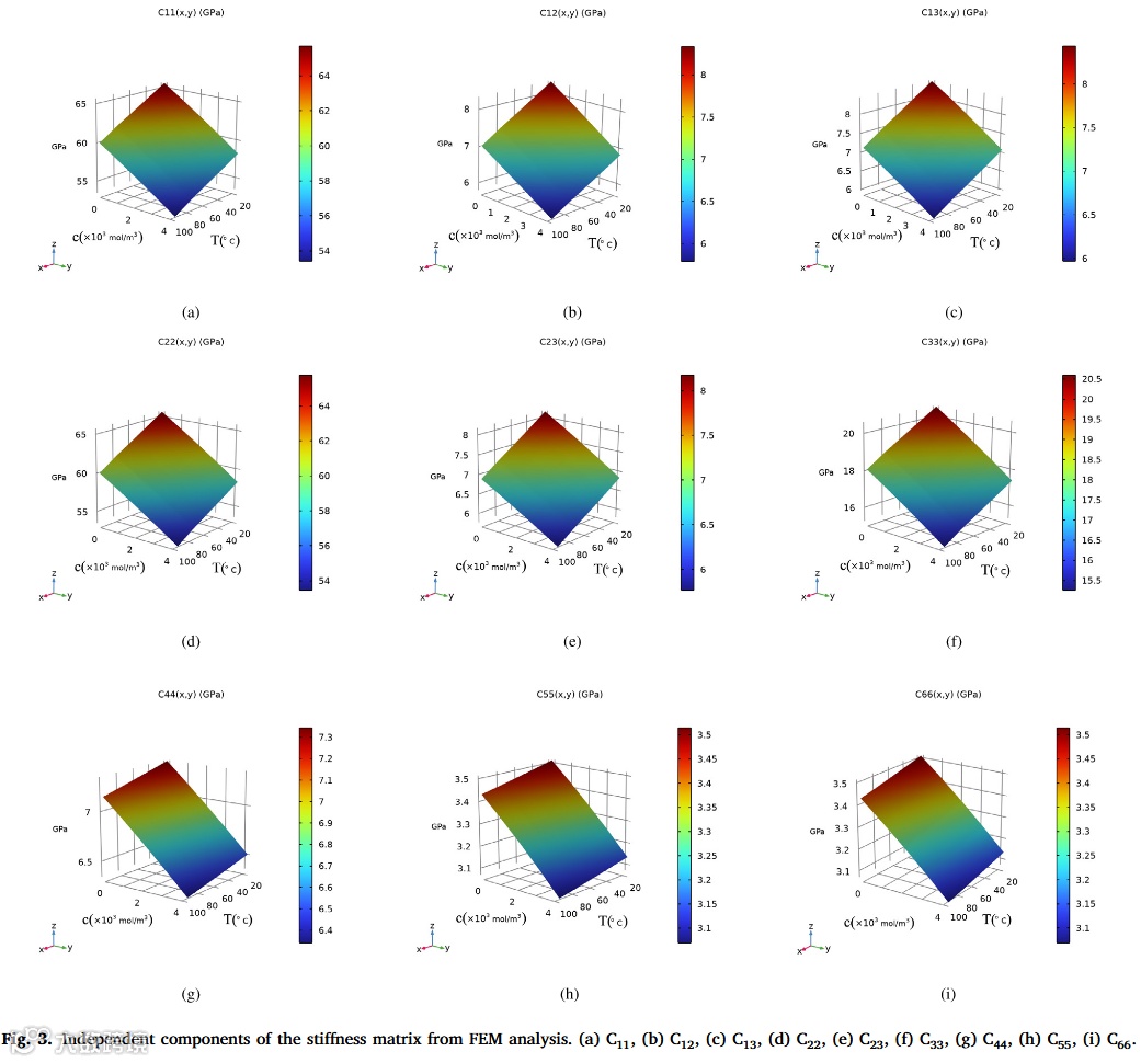 • 变量意义: 为温度 与湿浓度 依赖的刚度系数,通过25组 配点拟合为连续函数 -