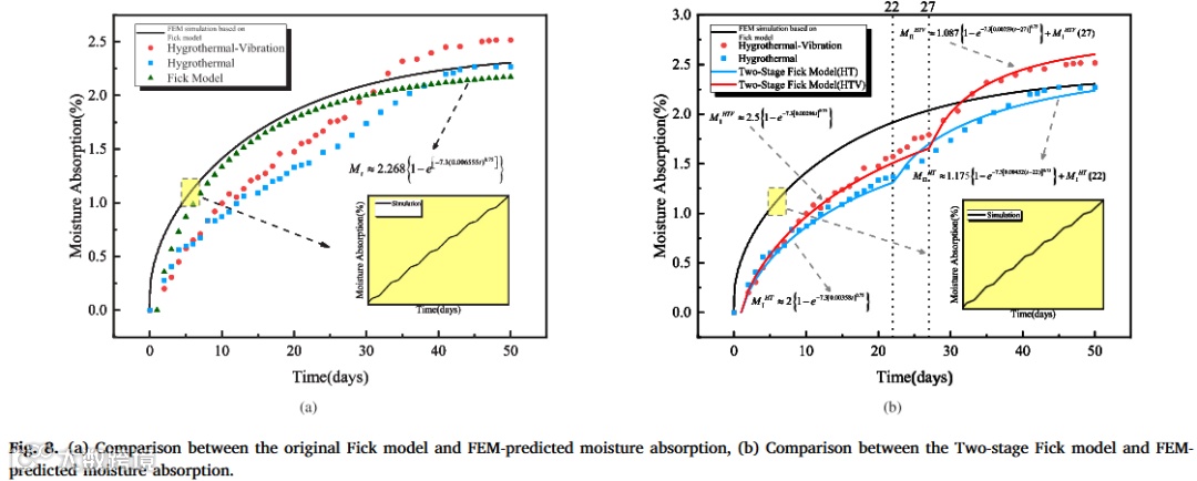 • 吸湿动力学:遵循修正Fick模型,两阶段扩散系数( , )反映振动对孔隙开闭的影响: -