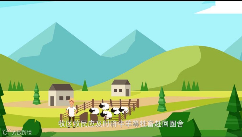 牧区牧民应及时将牛羊等牲畜赶回圈舍;若牲畜远离居民点,牧民应尽快将牲畜赶到背风处躲避。此外,还应采取措施防止草原、森林和人口密集区等发生重大安全事故。