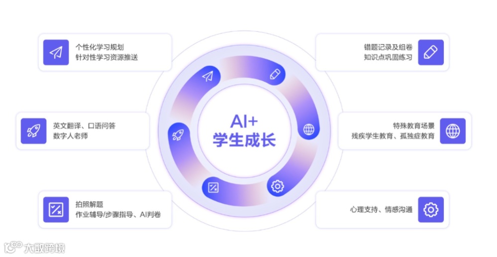 3)拍照解题、作业辅导、AI判卷: 学生拍照上传题目,AI系统秒级识别、解题并提供详细步骤;AI判卷系统客观公正评判,显著提高效率。