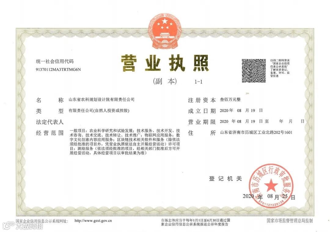 8月25日,山东省农科规划设计院有限责任公司(以下简称“公司”)获得登记注册,在济南正式成立。公司主营业务范围为农业科学研究和试验发展、农业农村领域规划设计、农业项目可行性研究报告编制、测绘等“四技”服务。公司现拥有一支经验丰富、专业敬业的科研攻关和市场服务团队,并聘请国内外规划咨询领域高层次专家担任技术顾问,积极打造集聚行业内规划设计领域优秀科技人才的“智慧高地”。