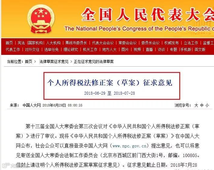 今天上午,中国人大网发布《个人所得税法修正案草案(征求意见稿)》,