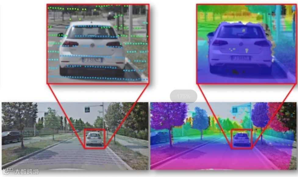 图表 12 双目立体视觉与激光雷达(128线)的视觉感知密度的比较