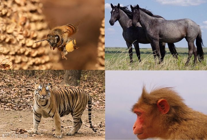 图表 9 蜜蜂, 马, 老虎和猴子的双目视觉。 来自Wikipedia