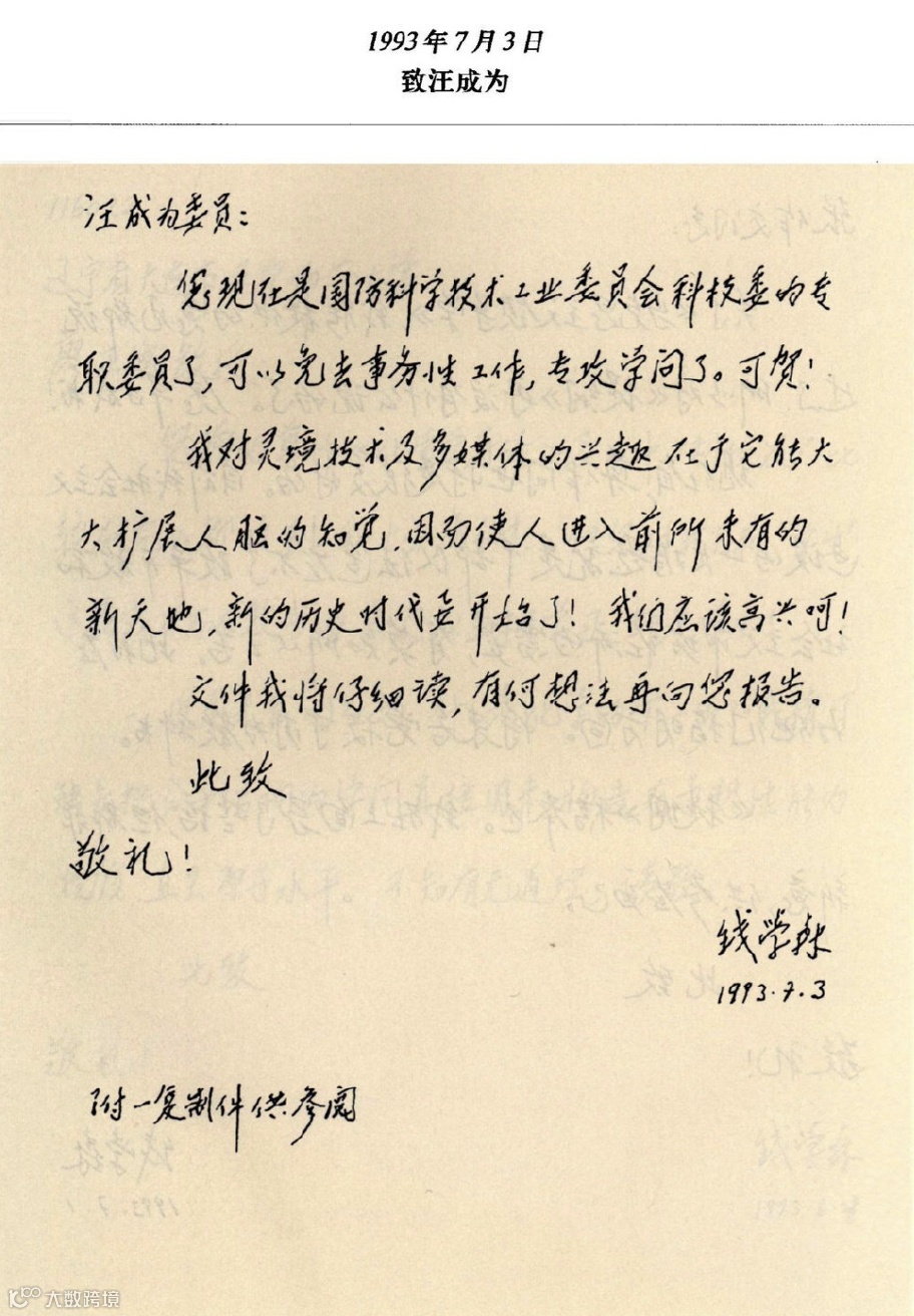 图 | 钱学森关于VR的亲笔书信