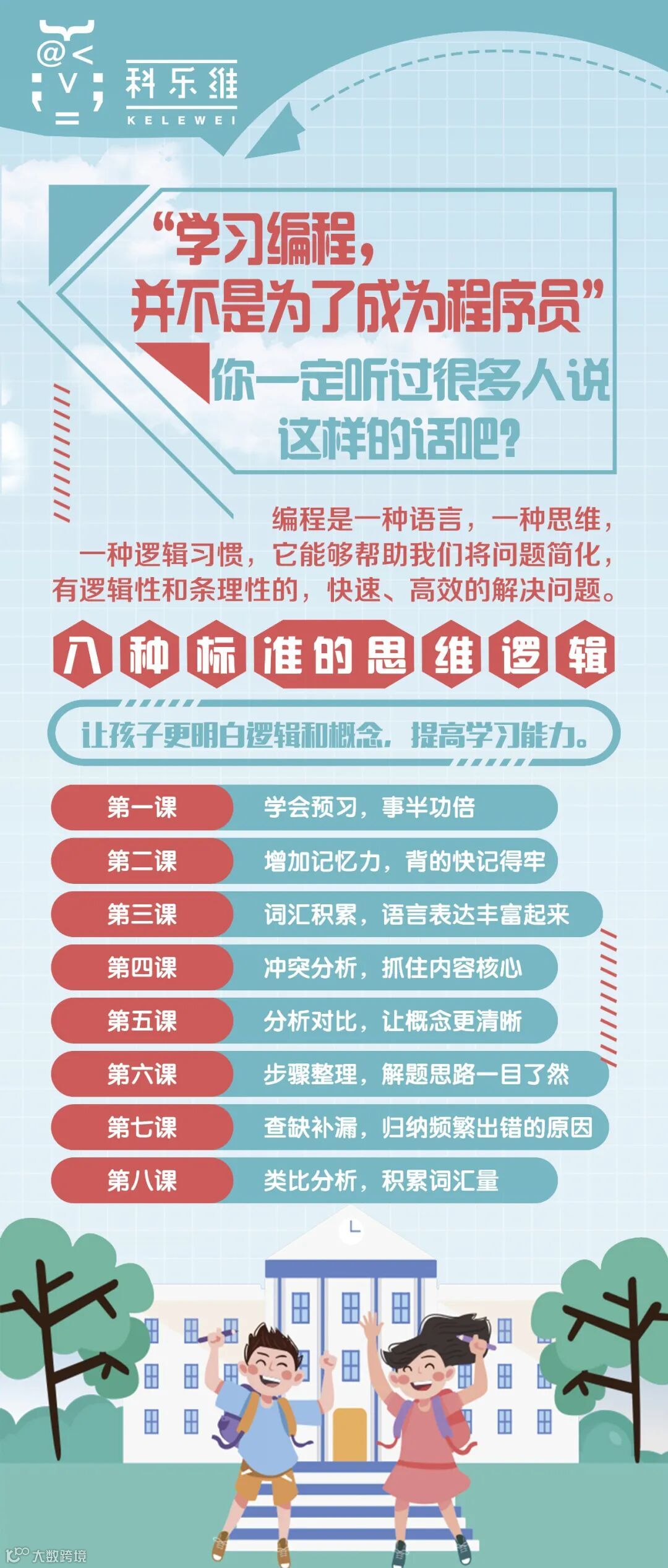 编程思维的附加值你不可不知!拥有编程思维的人目标明确,善于利用资源,不会被困难吓倒,他们相信问题会得到解决,面对挑战也会更自信、更有勇气。
