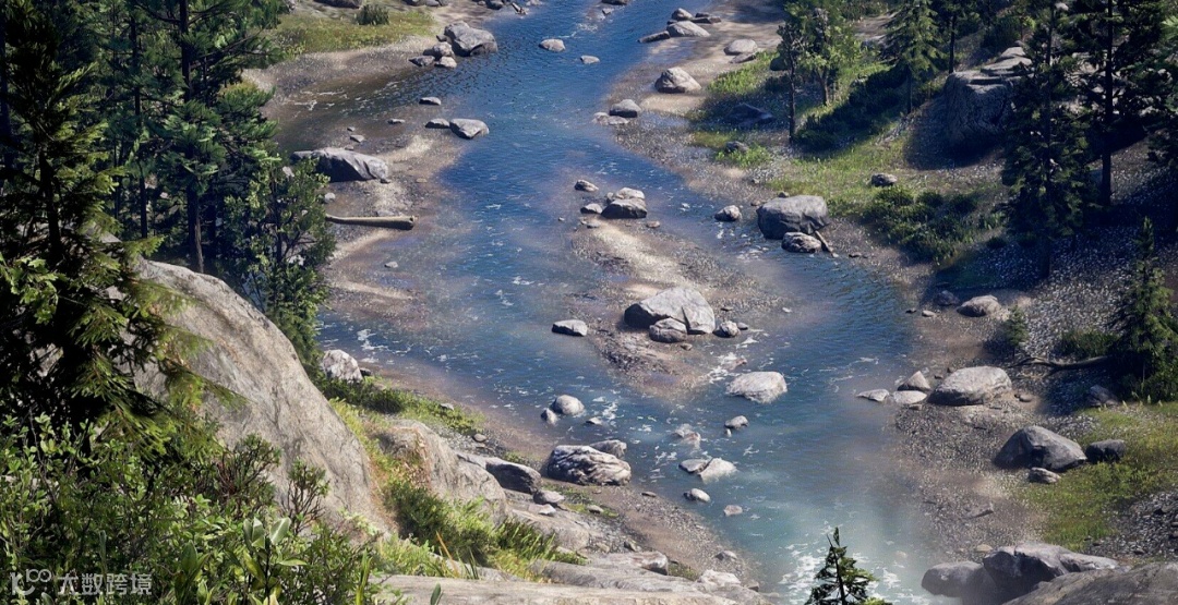 比如面对一张《荒野大镖客》的静态游戏画面,它能先解析画面中的海拔差异 —— 识别出山脉的起伏与河流的地势走向,再依据物理逻辑生成动态流水效果:清澈的河水顺着地形蜿蜒,遇到岩石时会自然泛起涟漪,连阳光照射下水面的反光角度都与现实规律高度契合。