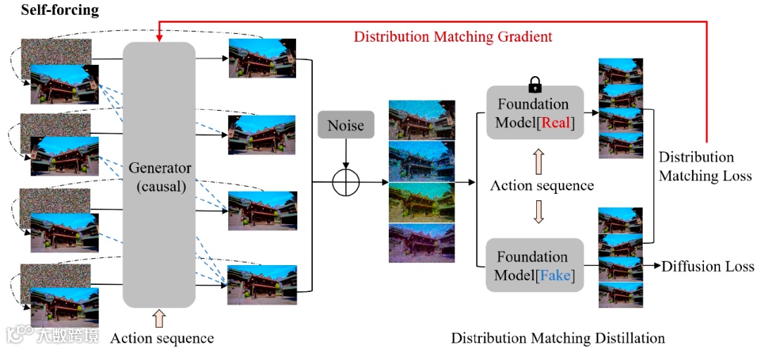 Matrix-Game 2.0 的亮眼表现,源于其技术架构的系统性设计,每一个模块的创新都指向 “实时交互” 与 “高效生成” 的核心目标。数据生产环节是基础支撑。昆仑万维设计了双引擎数据管线:在虚幻引擎中,通过程序化生成工具构建可控场景,精准匹配键盘控制与画面变化的对应关系;在 GTA5 环境中,开发综合记录系统,让视觉内容与用户动作实现毫秒级同步捕捉。
