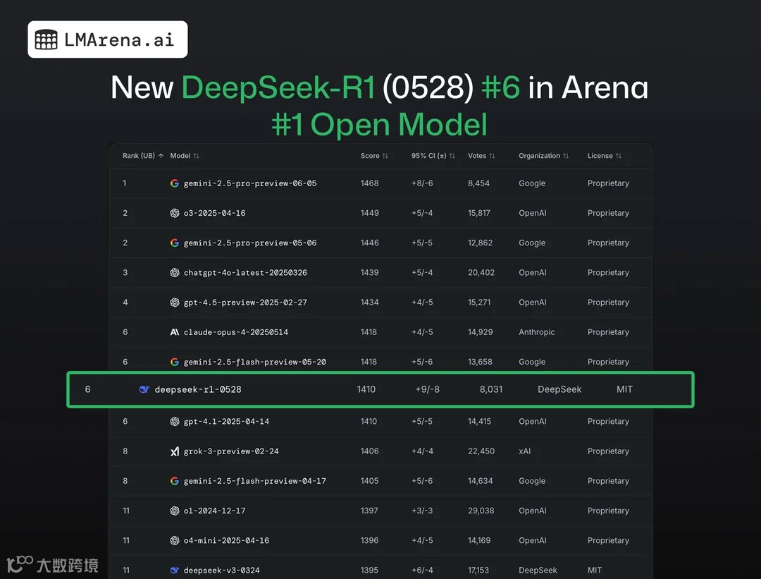 除了在编码领域的出色表现,DeepSeek-R1(0528)在文本竞技场中也展现出了强大的实力,排名第六。如今的文本竞技场,测试难度也在不断提升,它涵盖了广泛的语言理解、推理和复杂任务处理能力的考查。这里的测试题设置得极为精细,如同布满陷阱的迷宫,模型稍有不慎就会陷入其中。例如,Text Arena 的测试旨在精准揭示模型的弱点,其中的挑战细致入微、层次丰富,有些模型在面对这些挑战时,会暴露出 “幻觉” 问题,甚至会一本正经地胡说八道,给出与事实严重不符的回答。然而,DeepSeek-R1(0528)却能够在这样的测试环境中稳定发挥,与 GPT-4o、Claude Opus 等由巨额企业研究预算支持的模型展开直接竞争,这无疑彰显了它在文本处理能力上的深厚底蕴。