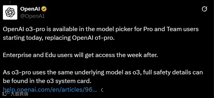 o3 - Pro 的发布,不只是一款模型的迭代,更像是 OpenAI 对 “高级认知系统” 交出的一份新阶段答卷。在这个模型愈发 “像人”、也可能超越人的节点,我们或许正处在 Altman 所说的那种 “惊奇已变成日常” 的时刻。而真正的超级智能时代,或许比我们以为的更近。随着 o3 - Pro 的应用逐渐广泛,它将如何进一步重塑科研、专业创作等领域的生态?人类又该如何更好地与这类深度思考型 AI 协同工作?这些问题都值得我们持续关注与深入探讨。