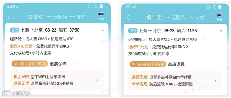 先看航班选择,AutoGLM 第一次在机票时间上出错,第二次在日期上出错,但航程起点和终点是正确的,并且都没有选择波音飞机。至于出错的原因,通过观察 AutoGLM 的操作逻辑能发现一些端倪。首先是日期选择的 bug:进入日历页面再退出后,“后天” 常常会莫名变成 “大后天”,这种问题虽不稳定复现,但足以说明它在基础交互上还不够可靠。时间选择的问题更明显,AutoGLM 并非真正理解 “11 点到 14 点” 这个条件,而是机械地依赖去哪儿网的预设选项,而平台上只有 “9–12 点” 和 “12–15 点” 这两个区间,它会随便挑选一个,若刚好有符合的航班,那便是 “歪打正着”,一旦没有,就直接出错,换句话说,这并非真正的智能,更多是一种巧合。