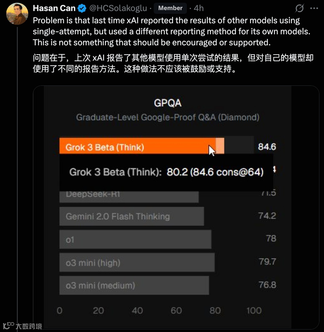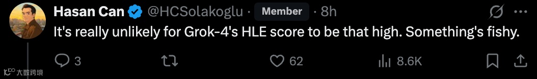 然而,数据真实性争议仍需官方澄清。@legit_api 在回复中强调 "数字真实但配置未知",引发关于测试环境标准化的讨论。AI 基准测试领域长期存在 "方法不透明" 问题,不同厂商对 "单次推理"" 外部工具调用 " 等定义存在差异,导致横向对比缺乏公信力。此次事件或将推动行业建立更统一的评估标准,例如由第三方机构进行盲测并公开完整日志。