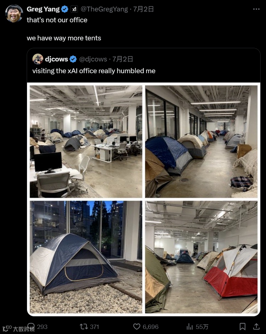 泄露的开发者中控台信息显示,Grok 4 在 6 月 29 日完成最终训练,标语 "Think Bigger and Smarter" 暗示其核心优势在于推理能力而非单纯规模扩张。代码注释中提到的 "跨模态知识融合模块" 虽未在当前版本启用,但为后续多模态功能埋下伏笔。结合马斯克近期在 X 上的表态,Grok 4 的研发团队为完成最后阶段优化,甚至在办公室搭建帐篷进行 7×24 小时攻坚,这种极致的工程化能力成为 xAI 追赶行业巨头的关键竞争力。