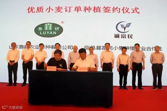 当天,来自国内小麦良种重大科研专家、小麦产业技术体系专家、种子经销商、面粉加工企业代表等360余人参加会议。山东农科院作物所、山东鲁研农业良种有限公司和山东鲁粮集团进行了优质小麦产业战略合作签约,鲁研公司和南顺集团、临邑富民小麦专业种植合作社分别签订优质小麦订单收购和种植协议,展示了山东在打造优质强筋小麦全产业链方面取得的成果。