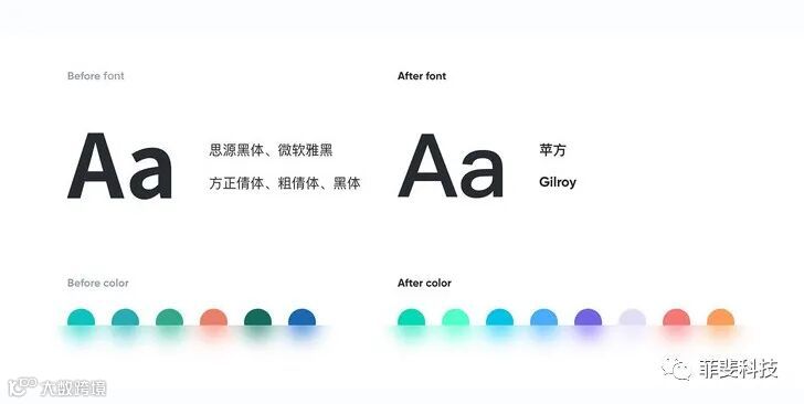 颜色的选择,同样根据关键词,情绪版来提炼。不同的是,为了最大程度的减少隐藏问题,当确定了风格页后,应先让开发帮我们把设计稿投到屏幕上看下效果,先不要急着做下一个页面。因为大屏的色域普遍比Mac窄,很多颜色显示不全,所以会导致偏色严重。有偏色要及时调整,对照着大屏的色域改颜色。