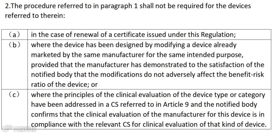 如果器械所属类型或类别的临床评价原则已在通用规范(CS)中详细阐述,并且公告机构确认制造商对该器械的临床评价完全符合相关 CS 要求,那么该器械无需进行 CECP 。例如,某类特定的 III 类植入器械,其临床评价原则在通用规范中有清晰的规定,制造商按照规范要求完成临床评价工作,经公告机构审核确认合规后,即可豁免 CECP 审查。