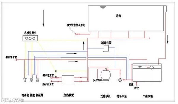 1、采用离子交换树脂制备超纯水的传统水处理方式,其基本工艺流程为:原水→沙炭过滤器→精密过滤器→原水箱→阳床→阴床→混床(复床)→纯水箱→纯水泵→后置精密过滤器→用水点