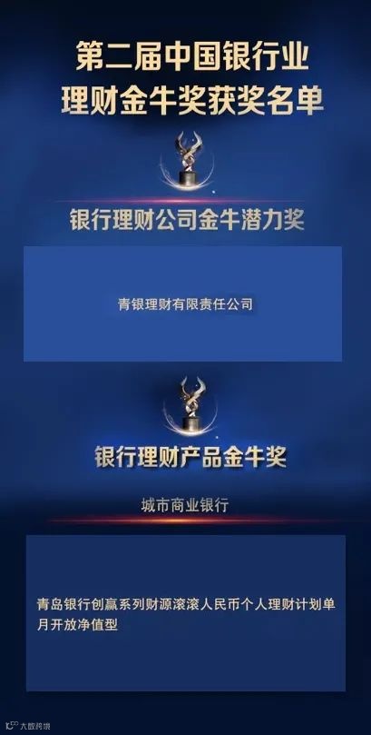 11月20日,由中国证券报主办的“2021中国银行业财富管理论坛暨第二届银行业理财金牛奖颁奖典礼”在上海隆重举行。青银理财凭借优秀的综合实力,斩获被同业称为“理财奥斯卡”的两项金牛奖,成为一家既获得公司奖项又获得产品奖项的城商行理财子公司。青银理财荣获“银行理财公司金牛潜力奖”,旗下管理的“创赢系列财源滚滚人民币个人理财计划单月开放净值型”产品荣获“银行理财产品金牛奖”。