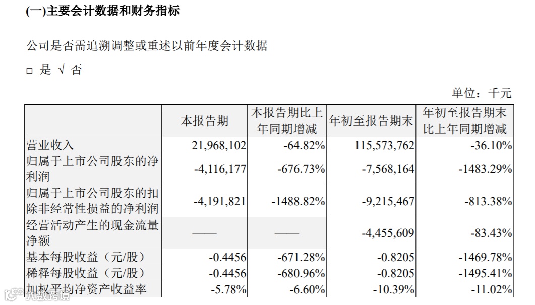 财务数据显示,今年第三季度,苏宁易购营收约219.68亿元,同比下降64.82%;净利润亏损41.16亿元,同比下降676.73%。前三季度,苏宁易购营收1155.7亿元,同比下降36.1%;净利润亏损75.68亿元,同比下滑1483.29%。