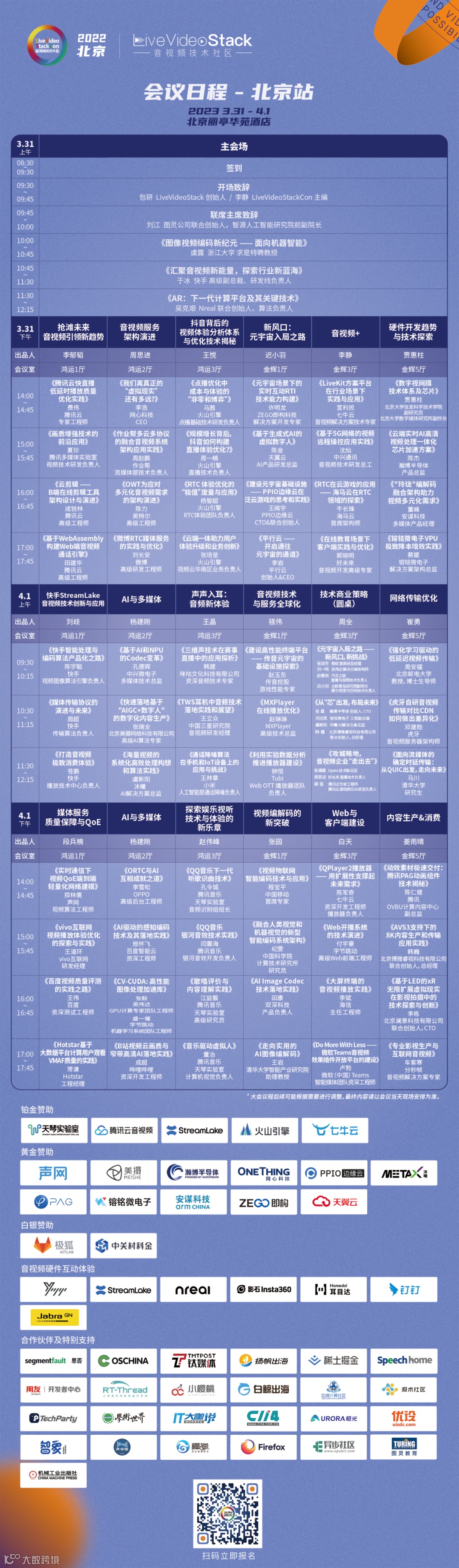本次大会目前暂未设置现场直播,更多技术内容与环节,欢迎报名现场感受和体验音视频的魅力与无限可能!