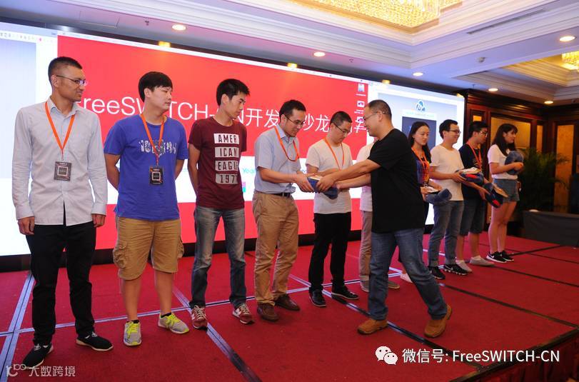 接下来就是我们激动人心的抽奖时间啦,这次我们准备的奖品有容联七陌提供的U型枕、双头数据线和定制笔记本,以及我们小樱桃网络科技有限公司提供的定制文化衫和FreeSWITCH权威指南以及文集,抽奖活动的开启将现场的氛围再一次推向火热的高潮。