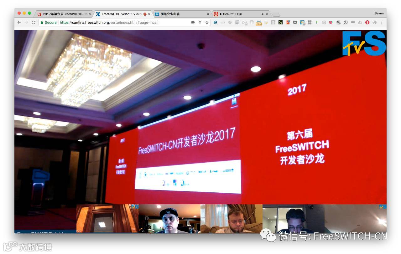 这次沙龙最惊喜的就是我们请到了FreeSWITCH之父Anthony和他的团队。会议没开始,他们就已经加入了一个FreeSWITCH视频会议室,调试准备一切就绪。