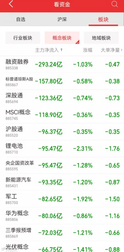 多只热门个股被抛售。中信证券、长安汽车、隆基股份、天齐锂业、北方稀土主力资金净流出规模居前,分别净流出19.20亿元、11.25亿元、9.44亿元、6.90亿元、5.58亿元。49只个股主力资金净流入超1亿元,五粮液、贵州茅台、中远海控等主力资金净流入规模居前。