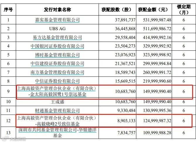 值得注意的是,获配名单中有嘉实基金、易方达基金、博时基金等基金,还有中信证券、中信建投、银河证券等券商的身影。