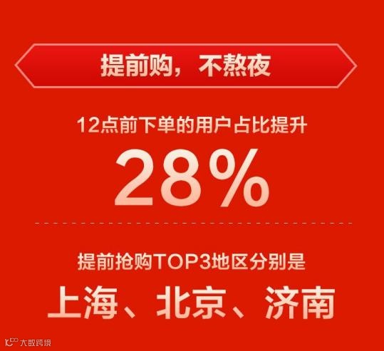 此外,今年双十一消费者乐于提前抢购付款,苏宁数据显示,12点前下单的用户占比提升28%,上海、北京、济南登顶“手速最快”消费城市。