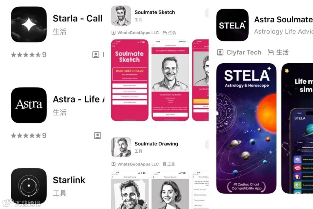 Starla 在 TikTok 发起的 #MySoulmateLooksLike 挑战,通过 UGC 实现病毒式传播。用户自发上传 AI 生成画像并 @好友,形成 "测试 - 分享 - 围观" 闭环。数据显示,该话题视频平均互动率(点赞 + 评论)达 27%,远超平台均值。这种将产品功能转化为社交货币的策略,让 Starla 在无传统广告投放的情况下,日下载量峰值突破 11 万。Astra 采用 "免费试用 + 分层付费" 模式:用户可免费生成画像,解锁 "灵魂伴侣动向追踪" 需支付 30 美元 / 月。更巧妙的是,它会在订阅到期前 3 天推送 "你的灵魂伴侣正在靠近" 的通知,利用损失厌恶心理提升续费率。这种将 "希望" 包装为持续服务的商业模式,使其月收入稳定在 30 万美元。部分 AI 算命应用已探索跨界变现:在画像页面嵌入珠宝电商链接,用户可购买 "增强桃花能量" 的水晶手链;与线下婚恋机构合作,按匹配成功人数收取佣金。这种玄学服务与实体商品、O2O 服务的结合,正在构建庞大的情感消费生态。