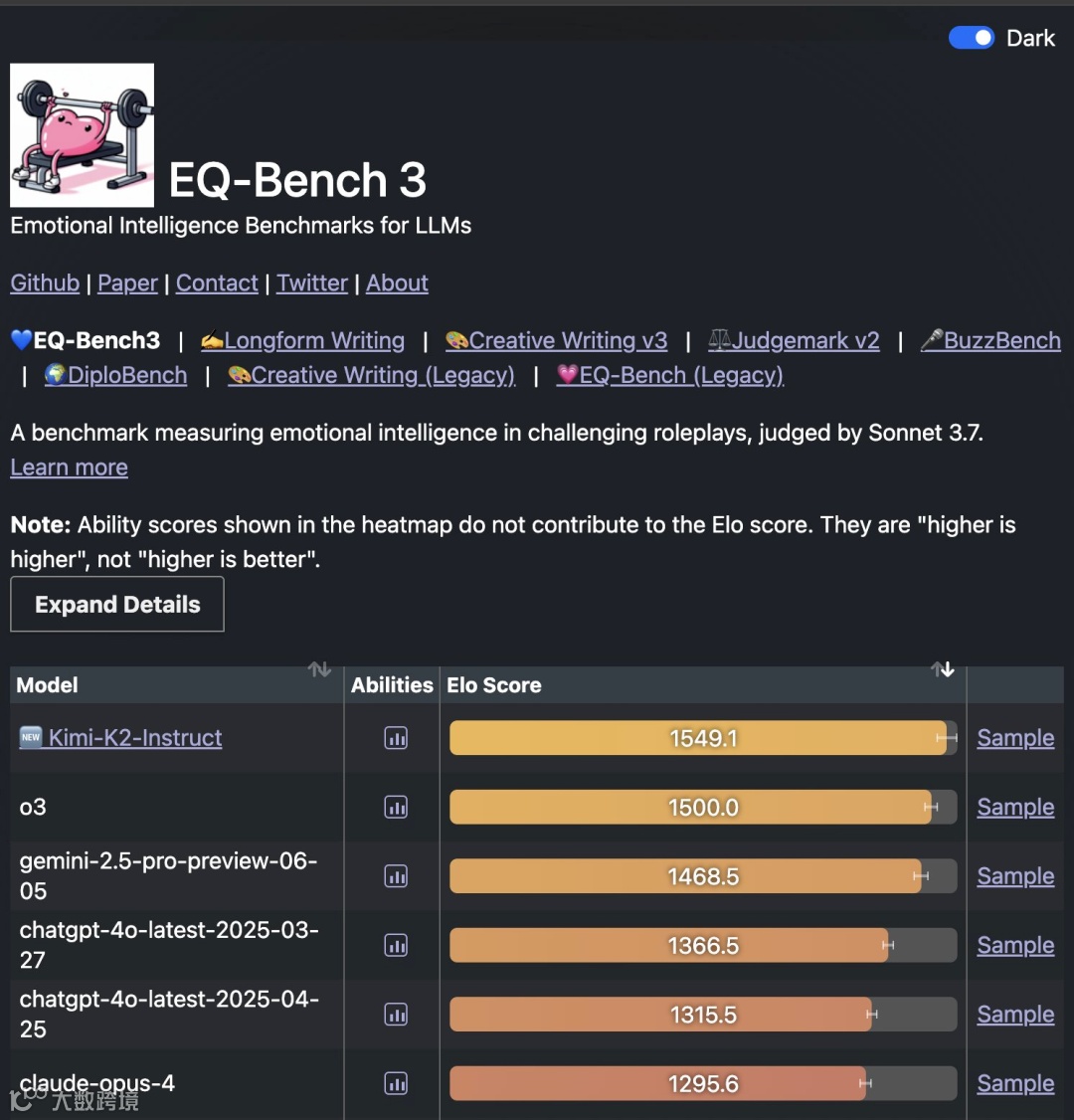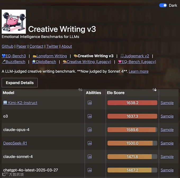 在 Agent 工具调用能力方面,前 Anthropic AI 工程师、MagicPath 创始人兼 CEO Pietro Schirano 评价称,Kimi K2 是自 Claude 3.5 Sonnet 之后首款让他在生产环境中放心使用的非 Anthropic 模型,其并行调用工具和 “知道何时停止” 的能力显著提升了任务处理效率。创意写作和角色扮演评测中,Kimi-K2-Instruct 也超越了 o3 等模型,展现出强大的泛化能力。这几天,陆续有开发者分享测试与体验 Kimi K2 的使用感受以及与其他国内外知名大模型的能力对比情况,值得一提的是,Kimi K2 在开发者群体中的各种实测不仅没掉 “链子”,而且表现似乎比官方给的预期更令人惊喜,在提到 Kimi K2 的帖子中,充斥着 “不输 Claude 4 但便宜 80%!、唯一超越 R1 的存在...” 等此类评价。