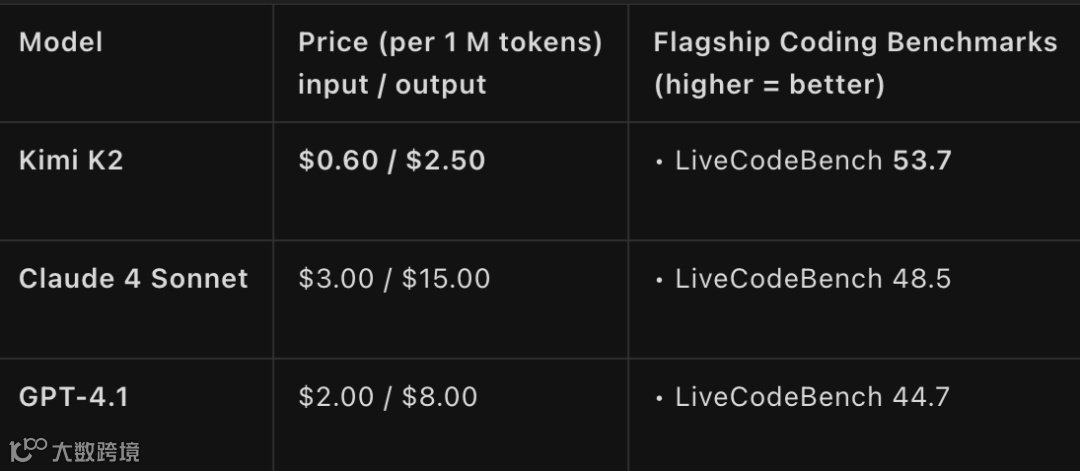 值得注意的是,Kimi K2 的 API 服务具备强通用性,兼容 OpenAI 和 Anthropic 两种格式,支持最长 128K 上下文,方便用户将现有框架无缝迁移至该模型。其输入输出价格分别为 4 元 / 百万 tokens 和 16 元 / 百万 tokens,虽高于 DeepSeek V3,但性能优势明显。不少用户踊跃测试了 Kimi K2 的真实编码能力,采取的方式为:直接将该模型连接到了 Claude Code。可以这样操作的原因正是 Kimi K2 的 API 服务具备强通用性,能够兼容 OpenAI 和 Anthropic 两种 API 格式,也可以与各类框架良好兼容。一位开发者在对比了模型性能情况与 token 价格后,得出的结果是:K2 的编码能力卓越,基本与 Claude 4 相当,但只需花费 Claude 4 的 20% 成本,唯一缺点是 API 有点慢。多年 AI 行业从业者刘小排在使用「K2 版 Claude Code」后的感受则是:“Kimi K2 驱动下的 Claude Code,编程能力和原版 Claude Code 差别不大,能平替 85%。如果用 DeepSeek 驱动,我认为只能平替 60%。” 有网友这样评价,“Claude Code 可以用 Kimi K2 的模型,这件事就很有意思。它证明了 Claude 这套 Agent 架构,基本可以适用于任何模型,理论上也支持 Gemini、Grok、o3。选择永远都在用户手里,而不在大模型公司的手里。”