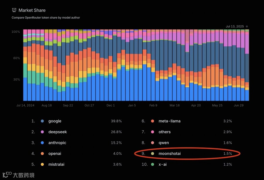 在人工智能领域的激烈竞争中,国内大模型独角兽月之暗面近期发布的 Kimi K2 模型引发了全球关注。这款采用 MoE 架构的万亿参数级基础模型,不仅在技术性能上实现突破,更在开源生态和实际应用中展现出强大的竞争力。其推出后迅速在海外掀起热议,推出不到两天,在大模型 API 聚合平台 OpenRouter 的 token 使用量就超越了马斯克创立的 xAI,而 xAI 前不久刚发布号称 “全球最强 AI” 的 Grok 4,Kimi K2 也由此成为开源模型领域的新标杆。