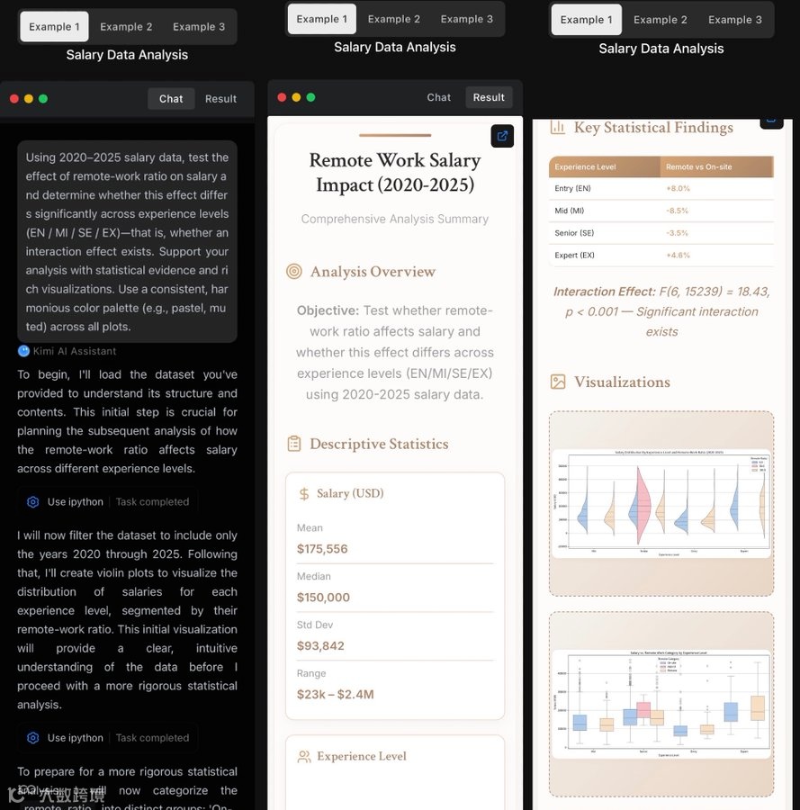 Kimi K2 的总参数量达到 1 万亿(1T),激活参数为 32B,现已在 Kimi Web 端和 App 端中上线。在代码、Agent、工具调用这三方面的相关基准测试中,该模型均取得开源模型中的 SOTA 成绩。开发者实测显示,其编码能力与 Claude 4 相当,但成本仅为后者的 20%。一位开发者将 Kimi K2 连接到 Claude Code 进行测试,发现其编程能力能平替原版的 85%,而使用 DeepSeek 驱动时仅能平替 60%。此外,Kimi K2 在 Python 数据分析、前端开发等实际场景中表现出色,可生成兼具设计感与视觉表现力的代码,并能自动拆解需求为可执行的 ToolCall 结构。有用户分享了用 Kimi K2 几乎写完一整个前端组件库的案例,且过程完全由该模型自主实现,没有引用任何外部组件库,“只用非常简单的提示词,但是出来的效果超级好!” 对于 Python 数据分析任务,Kimi K2 也能一次性搞定,还可以生成一个网站,“成本仅需几分钱”,测试用户这样表示。