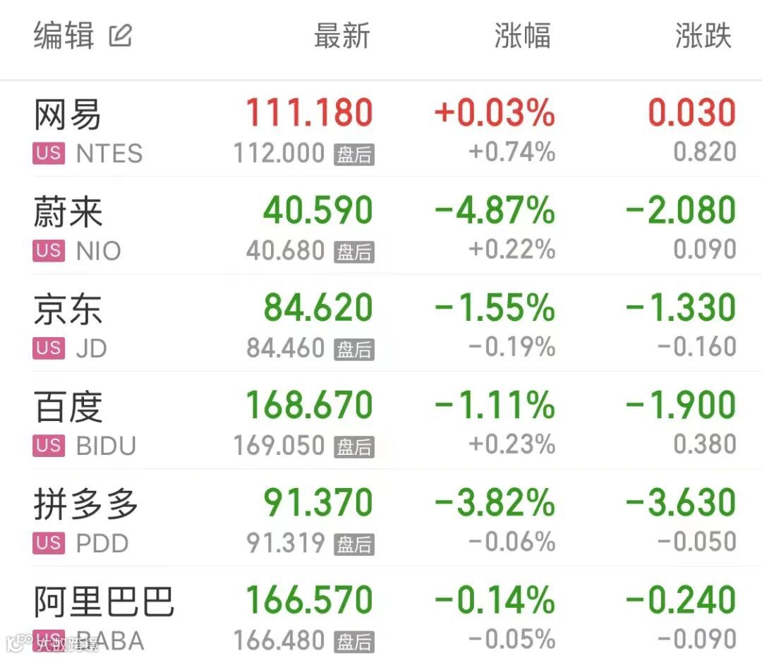 热门中概股多数回落