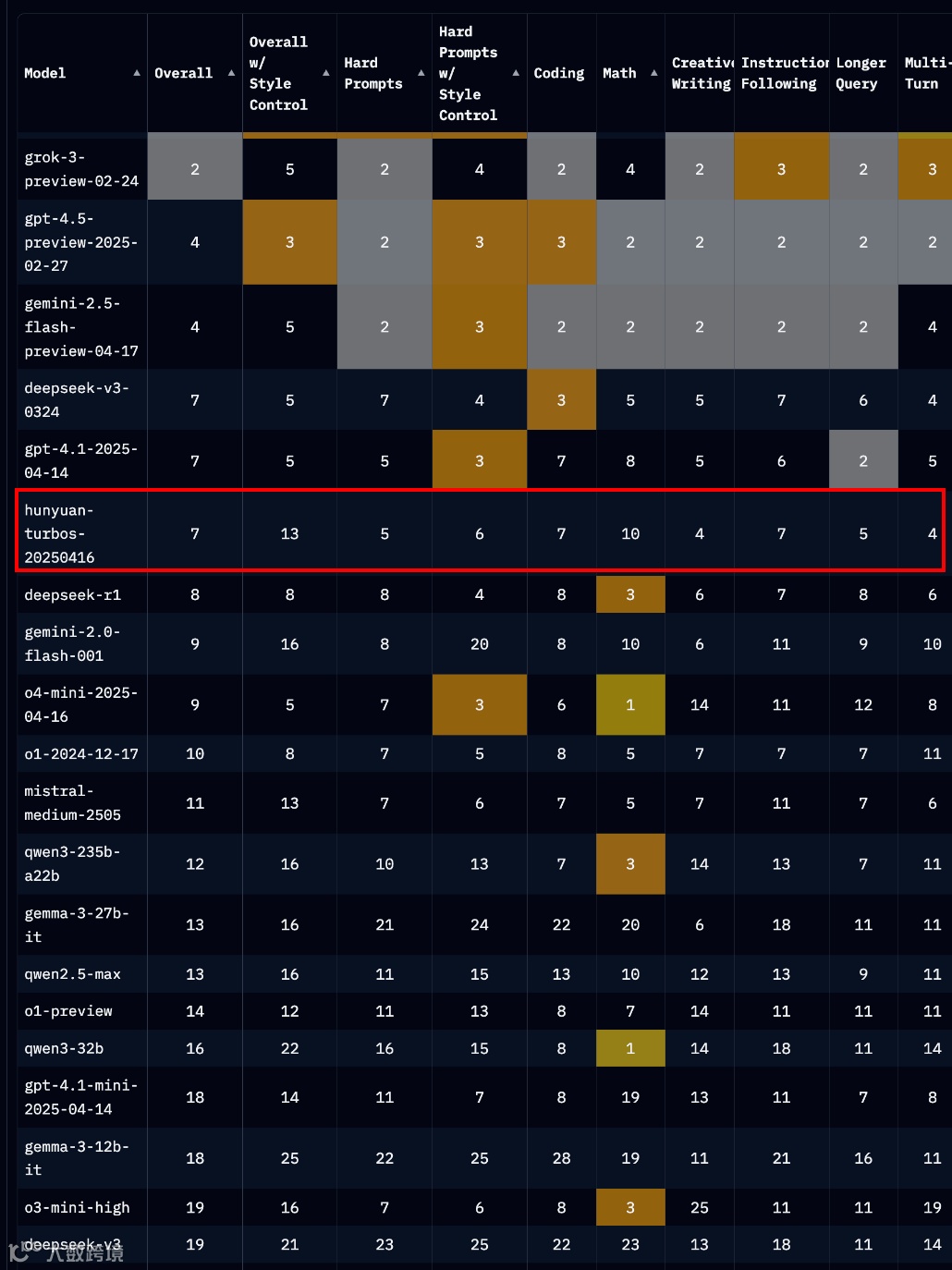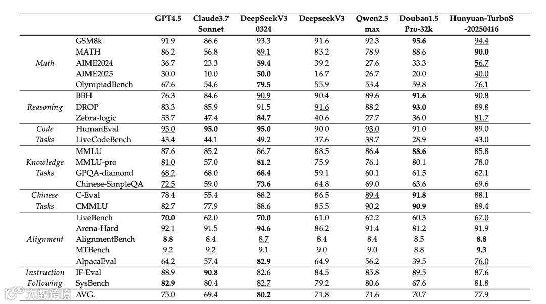 TurboS在多个权威评测中展现出全面优势。在Chatbot Arena 239个参赛模型中位列全球第7,国内仅次于Deepseek,超越Claude、Llama等知名模型;中文、法语、西班牙语并列全球第一,韩文排名第二,展现出卓越的跨语言处理能力;在困难提示、创意写作、多轮对话、长问题四大任务中均进入全球前五,尤其在数学推理(仅次于DeepSeek-v3-0324)、逻辑推理(与DeepSeek并列SOTA)等领域表现突出;推理成本相比前代模型降低7倍,在保持高性能的同时显著提升部署经济性。