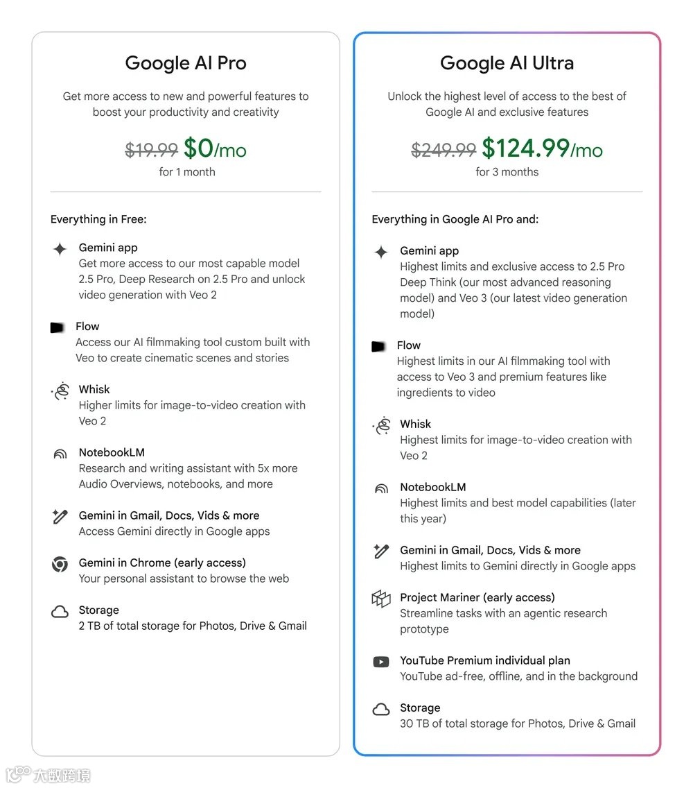 谷歌通过硬件创新和生态整合,构建起覆盖多场景的AI体验。基于Project Starline技术,Google Beam通过6摄像头阵列捕捉用户动作,结合AI生成毫米级精度的3D光场影像,在2D屏幕上呈现逼真的面对面交流体验。其实时语音翻译功能支持英语与西班牙语互译,未来将扩展至更多语言,并保留说话者的语气和表情。与Xreal、三星合作的安卓XR眼镜,集成Gemini助手和实时翻译功能,可在镜片上显示导航指引、实时字幕等信息。例如,用户在异国餐厅用餐时,眼镜会自动翻译菜单并提供菜品推荐;在会议中,实时字幕和语音翻译让跨国交流毫无障碍。谷歌推出每月249.99美元的AI Ultra订阅,提供Gemini 2.5 Pro Deep Think模式、Veo 3无限访问等高级功能;而AI Pro订阅(19.99美元/月)则面向个人用户,包含基础模型和工具使用权。这种分层策略既满足企业级需求,又降低个人用户的使用门槛。
