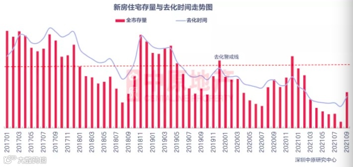 随着新房供应增加,新盘去化周期也在延长。深圳中原研究中心数据显示,截至9月29日,深圳全市新房住宅存量为231.4万平,环比上升40.8%。根据过去一年平均成交量计算去化时间约为5.2个月,去化周期出现明显回升,但远未触及警戒线。
