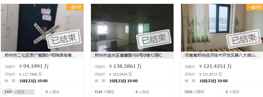 上述个案只是一个缩影。记者在阿里拍卖上发现,郑州的法拍房交易近期频现折价,仅10月23日就有多笔交易的成交价低于评估价几十万元。