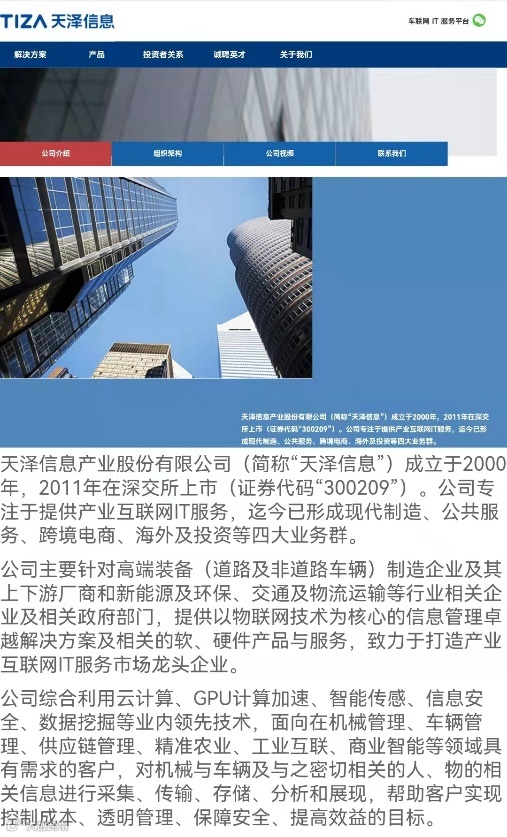 虽然天泽信息发布公告澄清与车联网相关概念无关,但中证君查阅公司官网发现,相关资料仍显示公司“专注于提供产业互联网IT服务”“提供以物联网技术为核心的信息管理卓越解决方案及相关的软、硬件产品与服务”,相关产品如智能车载终端等介绍资料也显示与车联网概念密切相关。