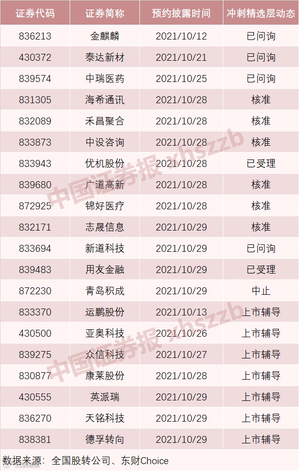 据中国证券报记者不完全统计,上述46家创新层公司中,有7家公司正接受申报精选层的辅导,有13家公司申报精选层已获受理。