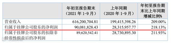 前三季度,金麒麟实现营业收入6.16亿元,同比增长209%;归母净利润为9008.18万元,同比增长218.13%。其中,公司第三季度营收为2.01亿元,同比增长68.61%;归母净利润为3061.62万元,同比增长99.53%。